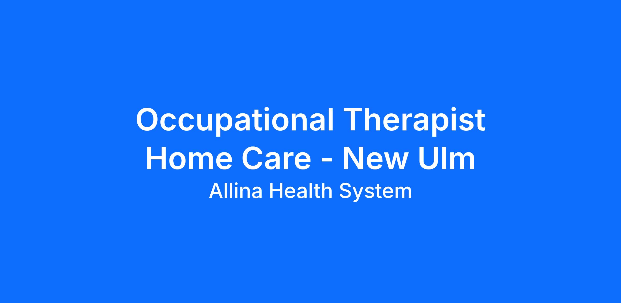 Licensed Occupational Therapist - MN Department of Health required if service area is in Minnesota upon hire
