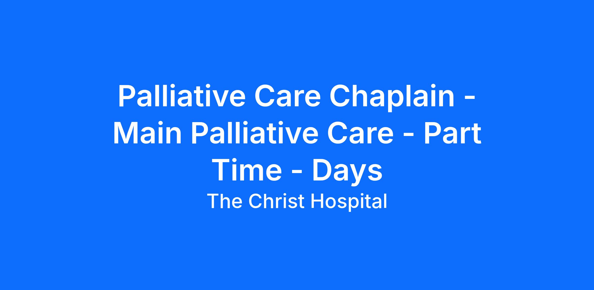 EDUCATION: Bachelor’s required, masters preferred, four clinical pastoral education units, palliative care continuing education.