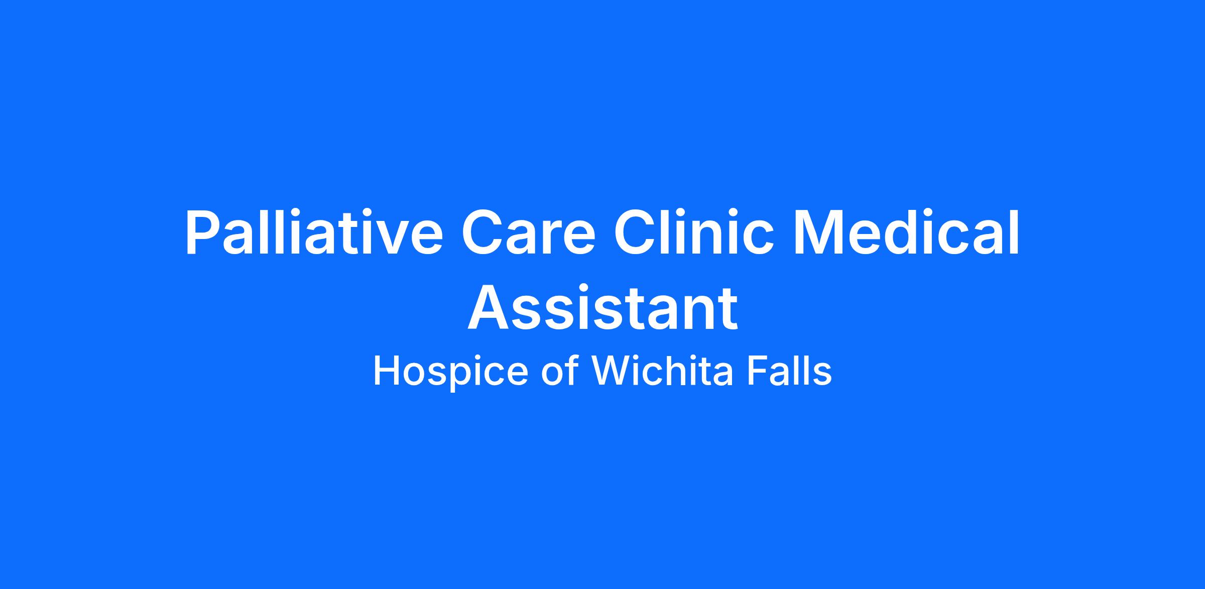 What a privilege to be invited into the lives of patients and families. At Hospice of Wichita Falls, our Palliative Care Team delivers loving, compassionate care with excellence. We're seeking a Palliative Care Clinic Medical Assistant who blends warm patient service with sharp administrative skills-so we can continue offering Care, Hope, and Support for All when Illness Threatens Life. Apply today!