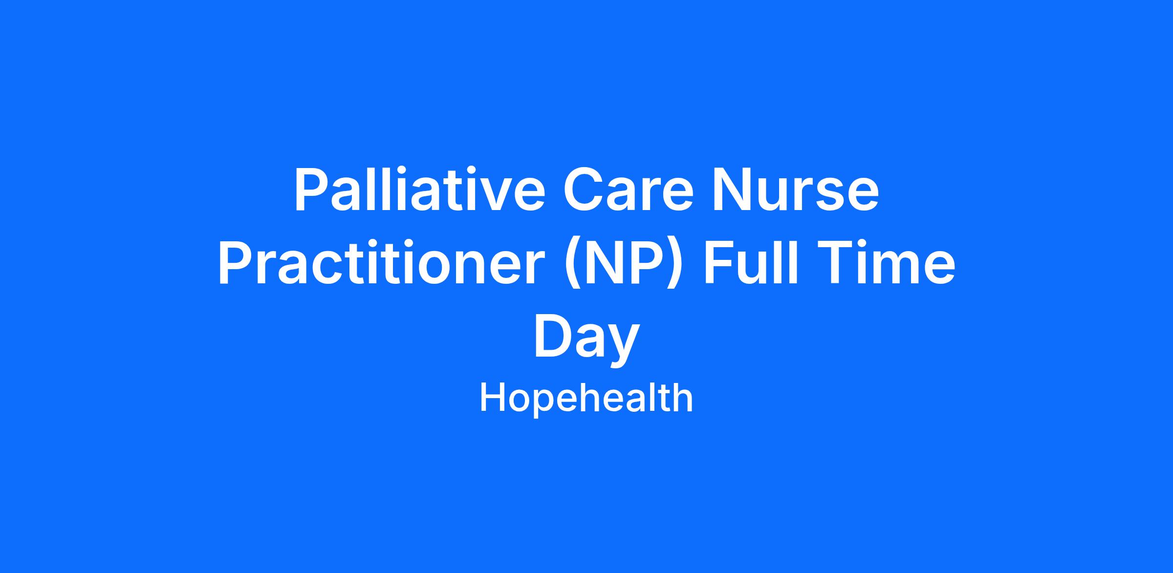 About This Palliative Nurse Practitioner (NP) PositionHopeHealth is seeking an experienced Palliative Nurse Practitioner for its affiliate HopeHealth Hospice & Palliative Care.