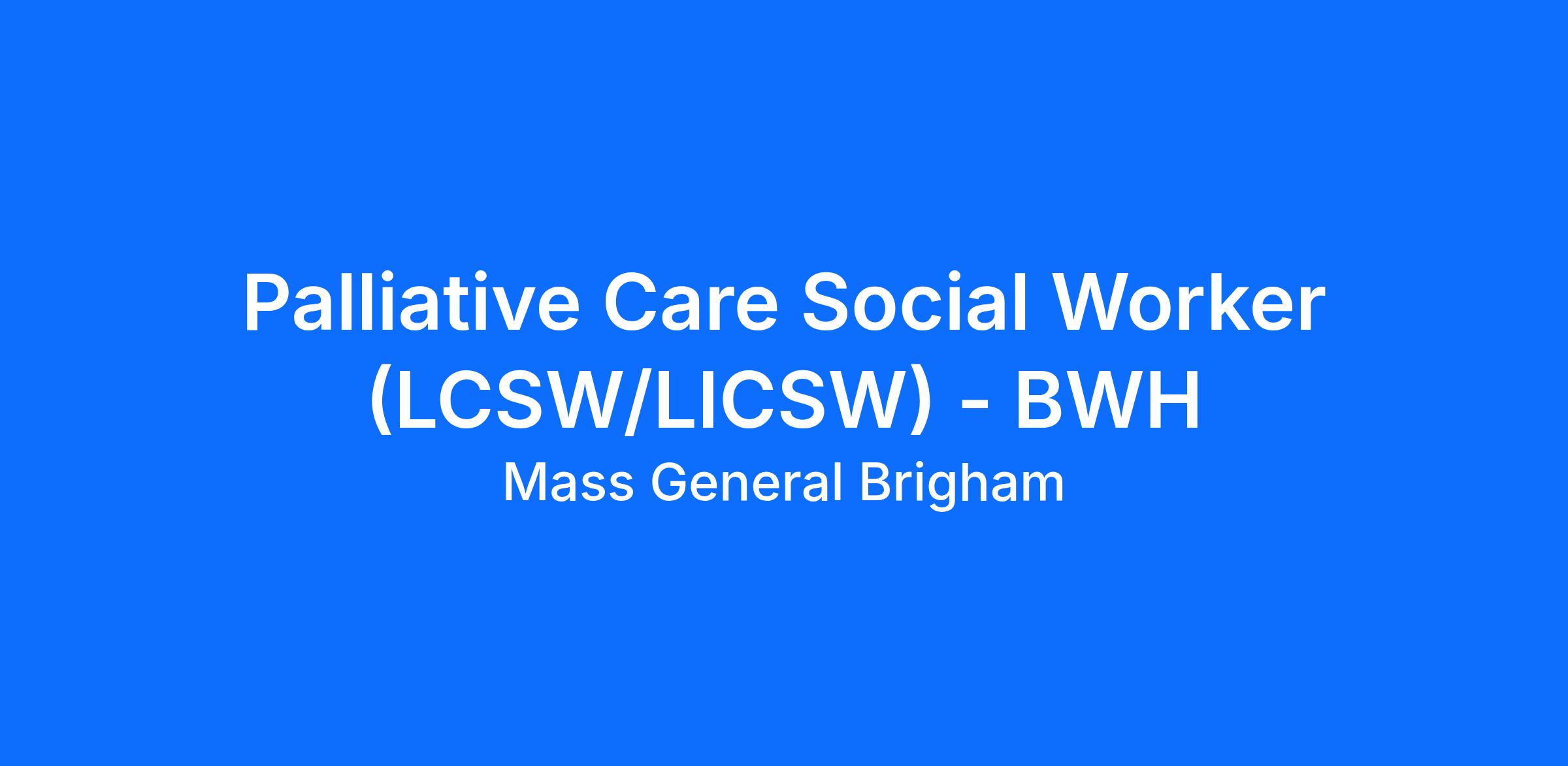 HEART PALLIATIVE SOCIAL WORKER / FULL TIME/ 40 HOURS/ BWH CARE CONTINUUM/ BOSTON MA