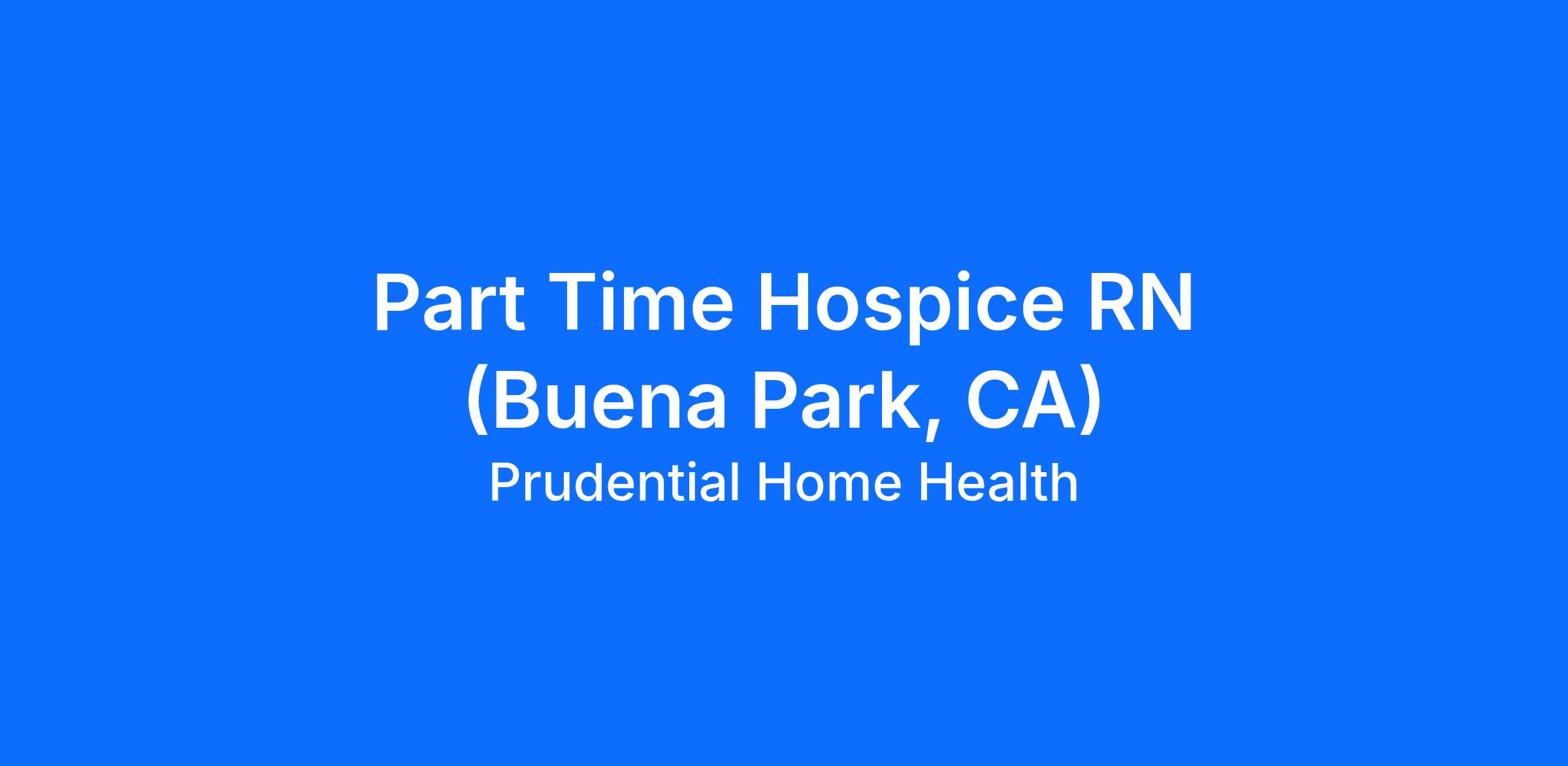 The Part Time Hospice RN plans, organizes and directs hospice care and is experienced in nursing, with emphasis on community health education/experience. The professional nurse builds from the resources of the community to plan and direct services to meet the needs of individual and families within their homes and communities. Our office in Cerritos provides Hospice professionals for the Orange County area including Long Beach, Torrance, Los Alamitos, Lakewood, San Pedro, Palos Verdes, Anaheim, Irvine, Tustin, and many others. Pay for this job is per hour.