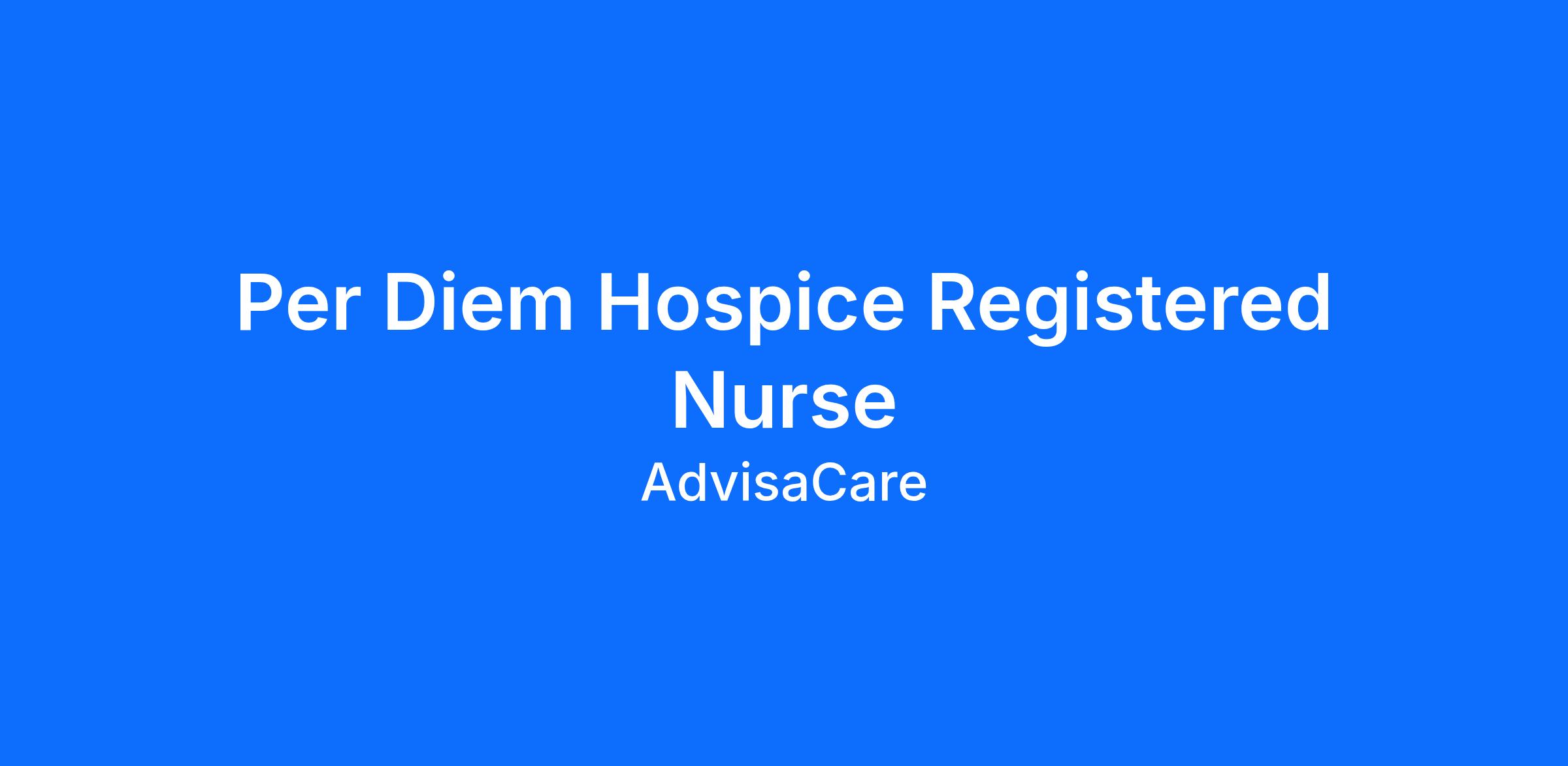 Does this describe you? Then you may be a great fit for the Per Diem Hospice RN role at AdvisaCare Hospice!!