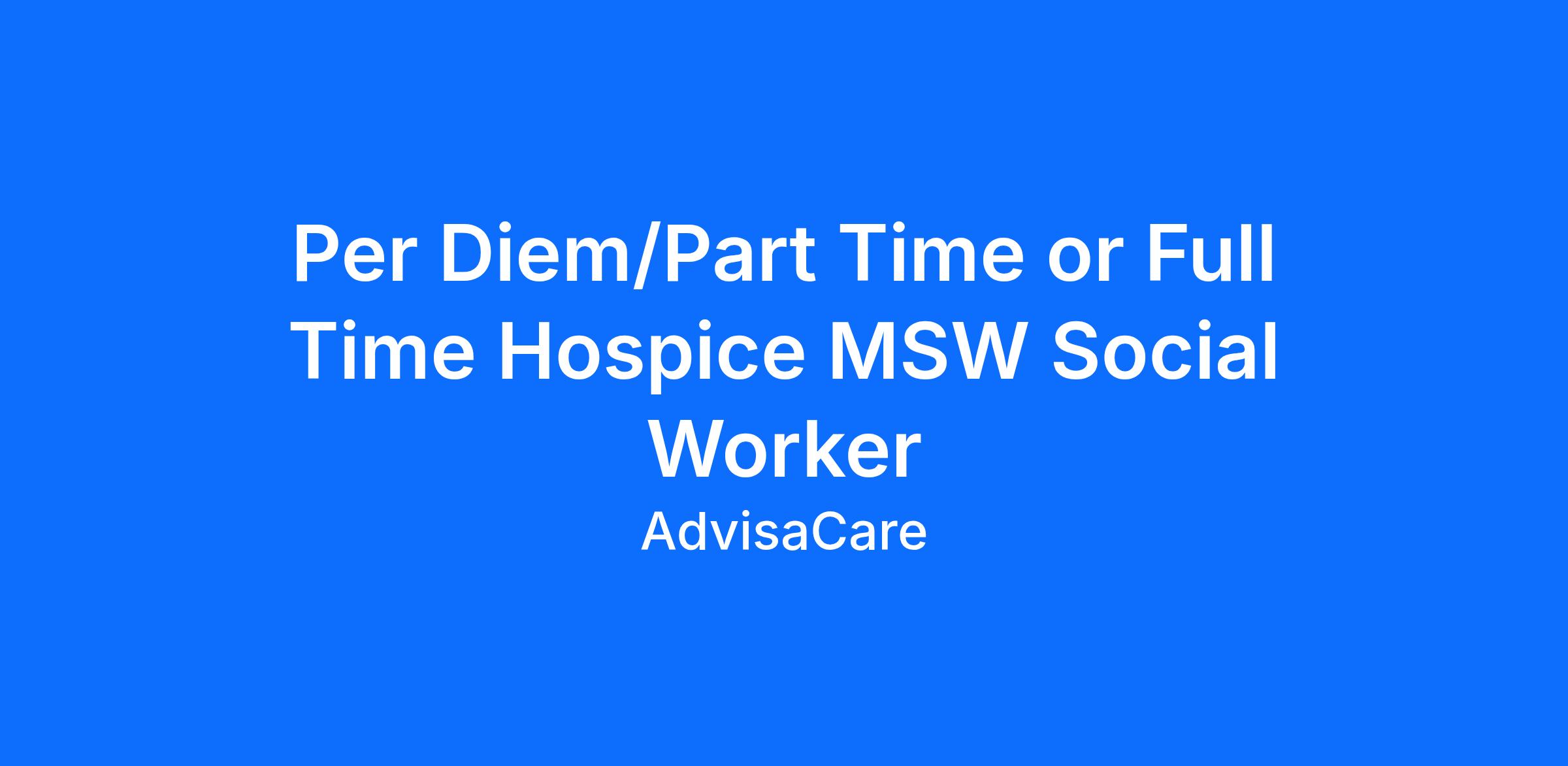 DescriptionAdvisaCare Home Health and Hospice is looking for a Full time compassionate MSW (Masters of Social Work)/Volunteer Coordinator to join our team in the Genesee and Lapeer Counties with our Troy location being your Parent Agency. AdvisaCare is dedicated to making a difference in the lives of our patients and the families we serve. If you are passionate about enhancing the lives of patients with life limiting illnesses, then we are a fit for you!