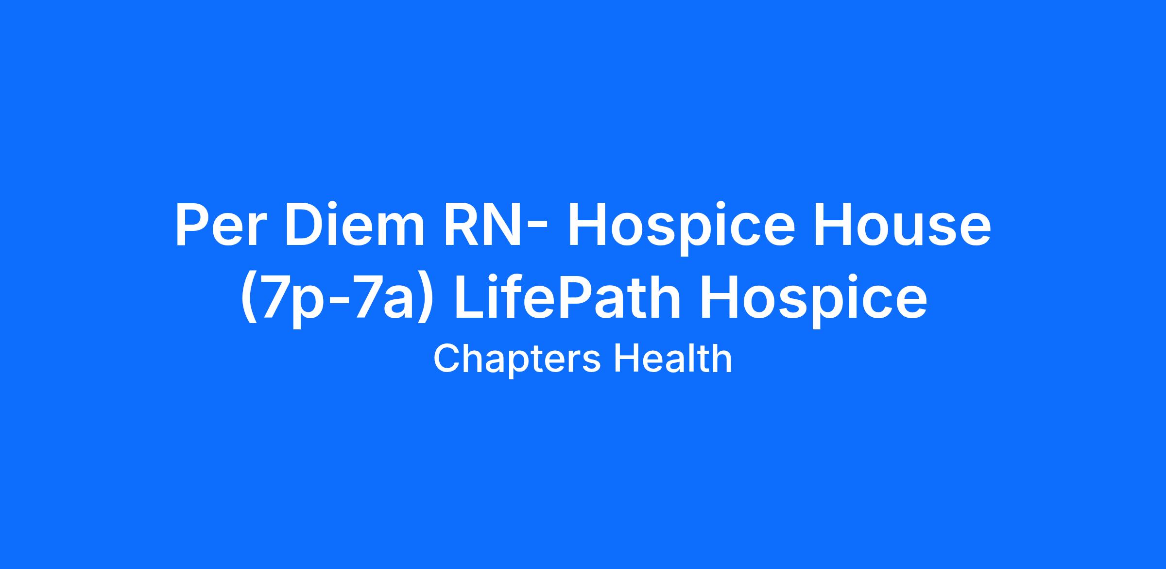 - Flexible schedule to meet the needs of Hospice House patients