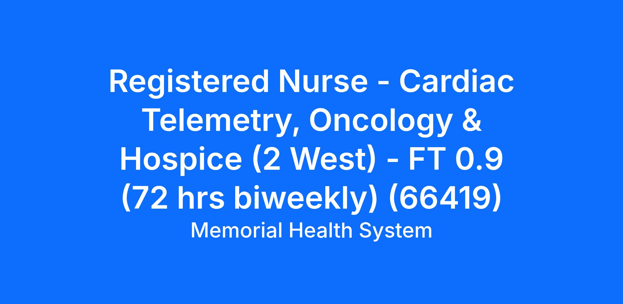 Benefits: Memorial Health System is proud to offer an affordable, comprehensive benefit package to all full time and flex time employees. To learn more about the many benefits we offer, please visit our website at www.mhsystem.org/benefits.