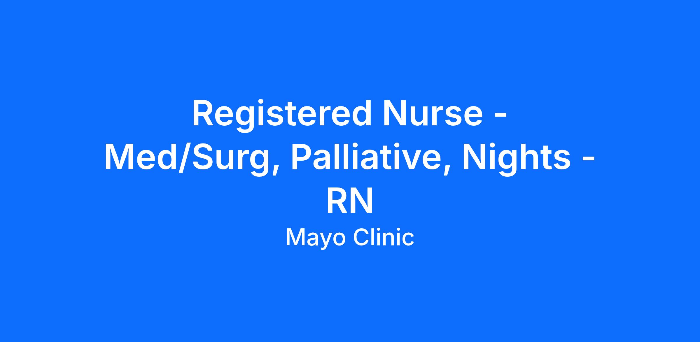The registered nurse (RN) is accountable for the coordination of nursing care, including direct patient care, patient/family education and transitions of care. The RN supports professional nursing practice across practice settings and across the continuum of care to meet the needs of the patient and family. The RN will function within the Mayo Clinic Nursing Professional Practice Model, which includes accountability for planning, implementing, evaluating and communicating all phases of nursing care for assigned patients. The ANA Nursing: Scope and Standards of Practice provide a basis for the practice of the RN. The RN provides leadership through activities such as preceptor role, informal and formal leadership roles, and quality improvement efforts. The RN delegates patient care according to skill level, experience, patient acuity, fiscal accountability and availability of resources. The RN possesses excellent communication skills; is skillful in mentoring and teaching; and may participate on committees or projects. A subset of employees may be required to drive their personal vehicle as a part of the responsibility of their role.