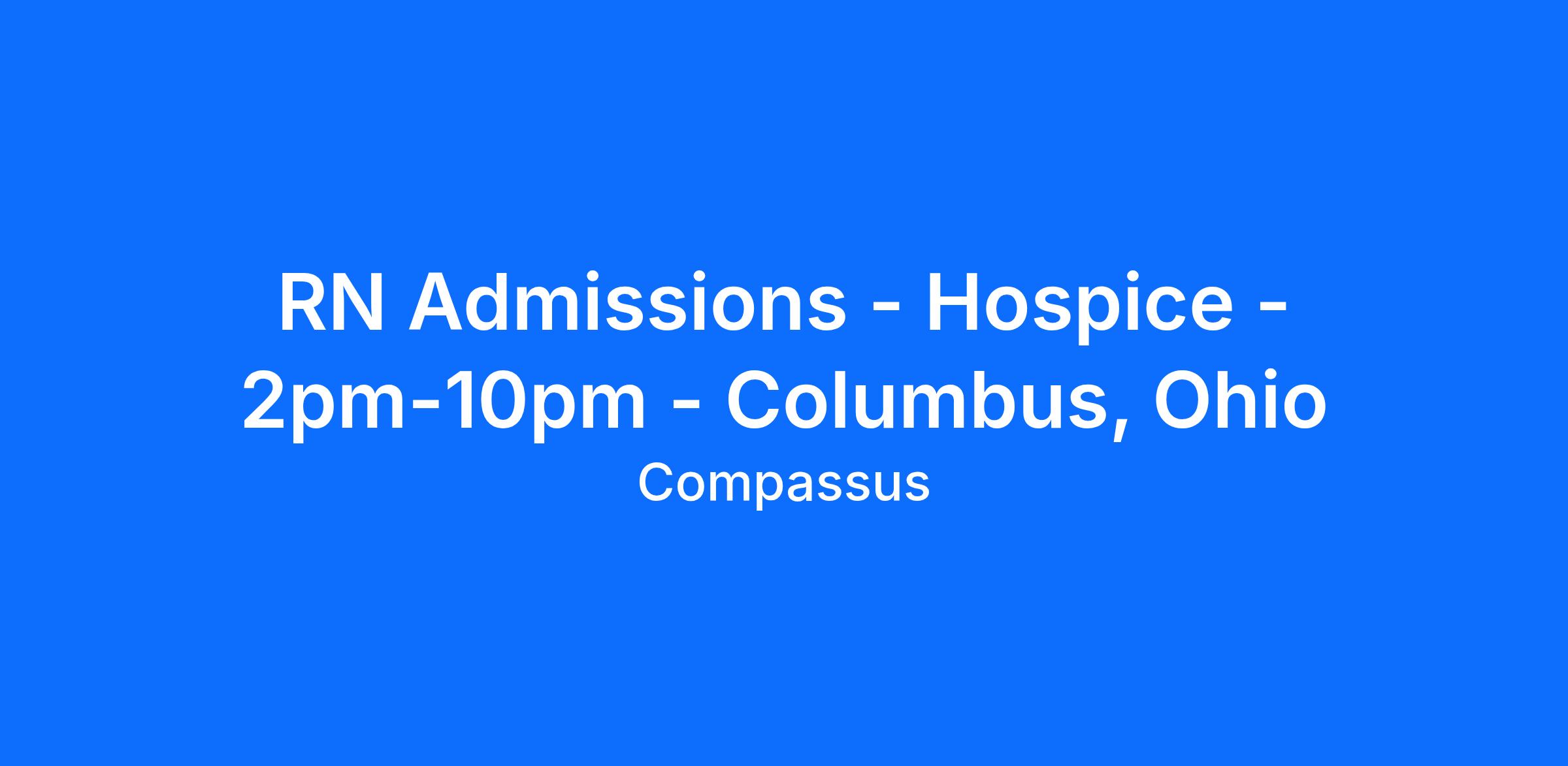 Your position perks as a Hospice Admission Registered Nurse / RN