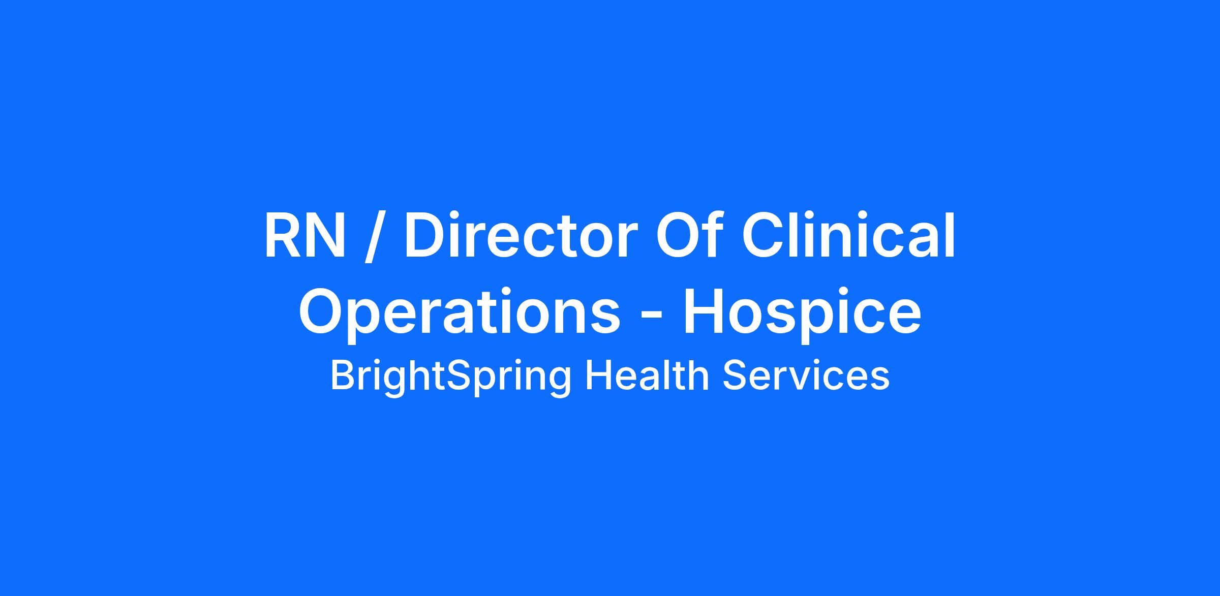 As a Director of Clinical Operations, You will: