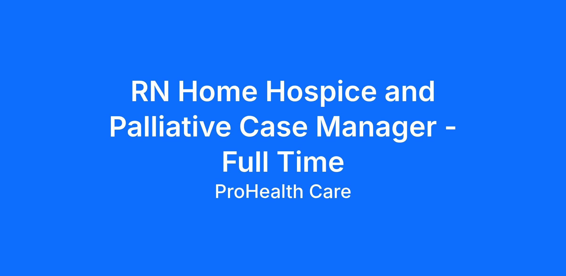 We Are Hiring: RN Home Hospice and Palliative Case Manager - Full Time