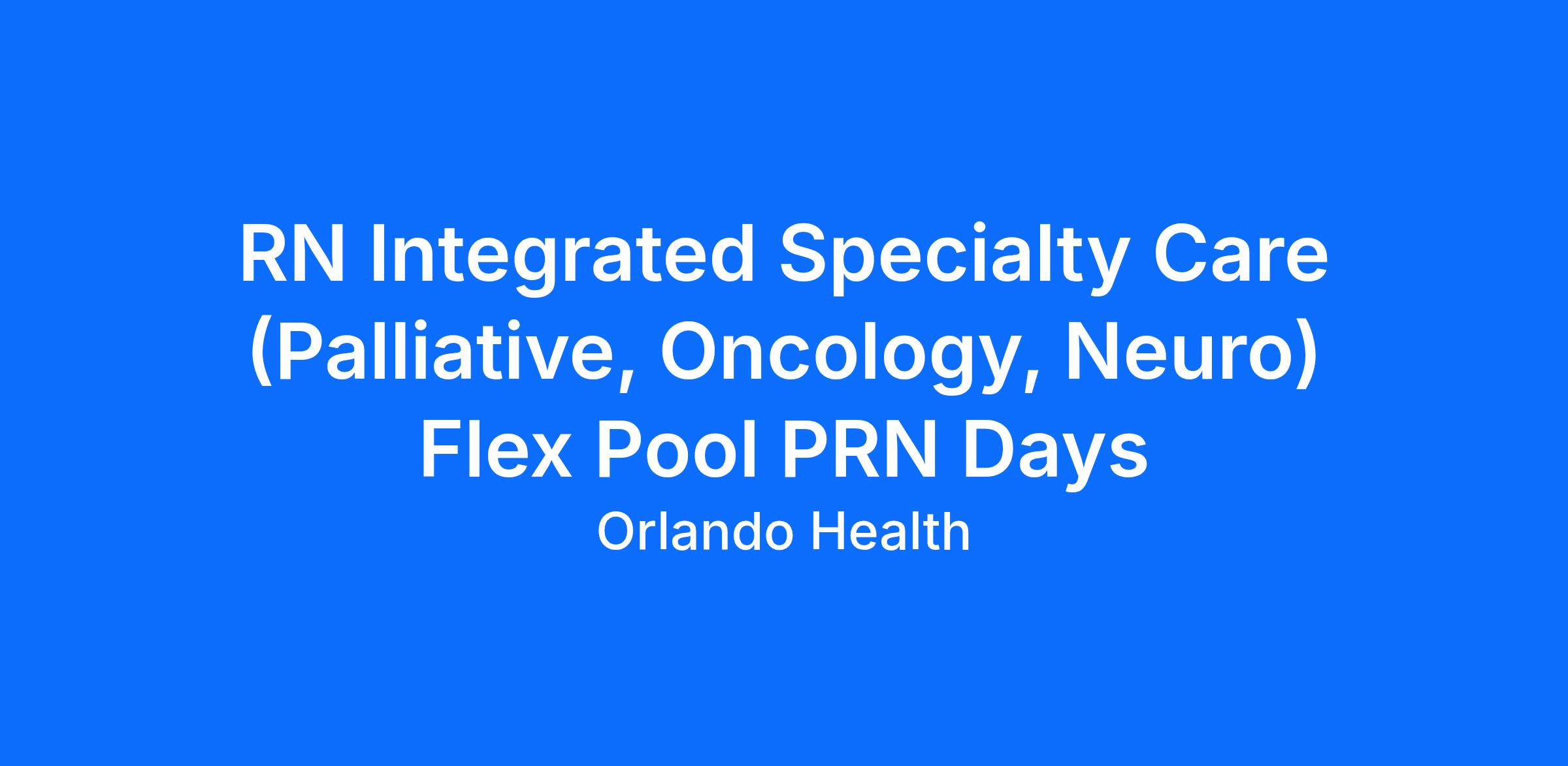 RN Integrated Specialty Care (Palliative, Oncology, Neuro) Flex Pool PRN Days