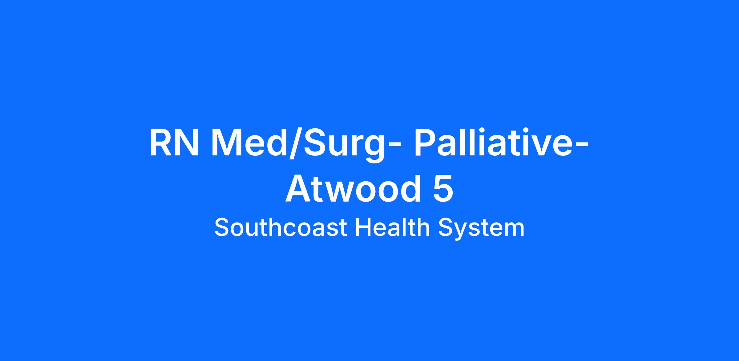 Atwood 5 is a 43 bed Medical/Surgical nursing unit. The patient population consists of adults and geriatrics with muti-system problems and diagnoses with some patients requiring surgical intervention. Atwood 5 specializes in the care of the Oncology and Palliative Care patients. Atwood 5 provides a wonderful foundation for solidifying your RN skills that can lead to many career opportunities at Southcoast!