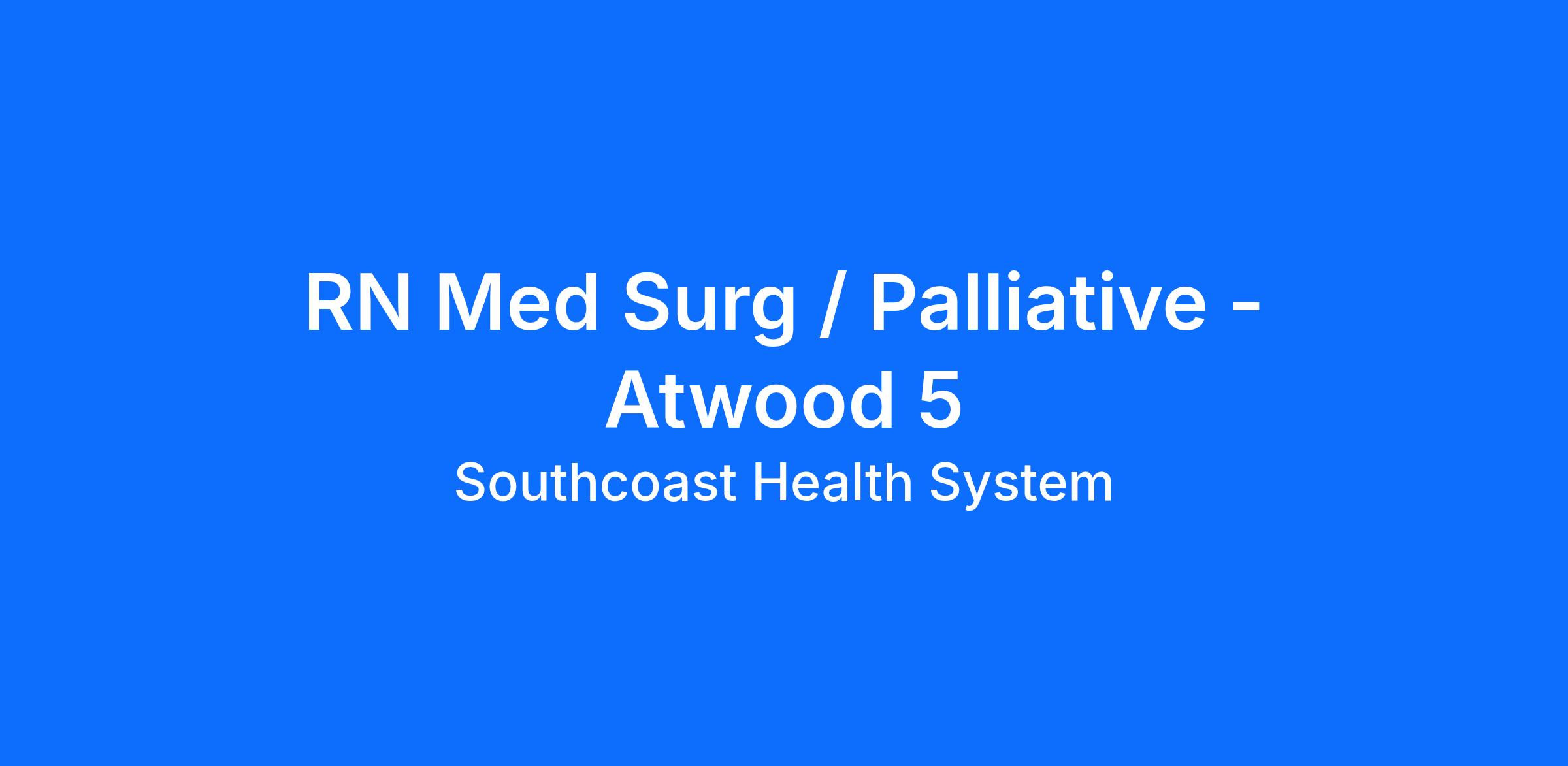 Atwood 5 is a 43 bed Medical/Surgical nursing unit. The patient population consists of adults and geriatrics with muti-system problems and diagnoses with some patients requiring surgical intervention. Atwood 5 specializes in the care of the Oncology and Palliative Care patients. Atwood 5 provides a wonderful foundation for solidifying your RN skills that can lead to many career opportunities at Southcoast!