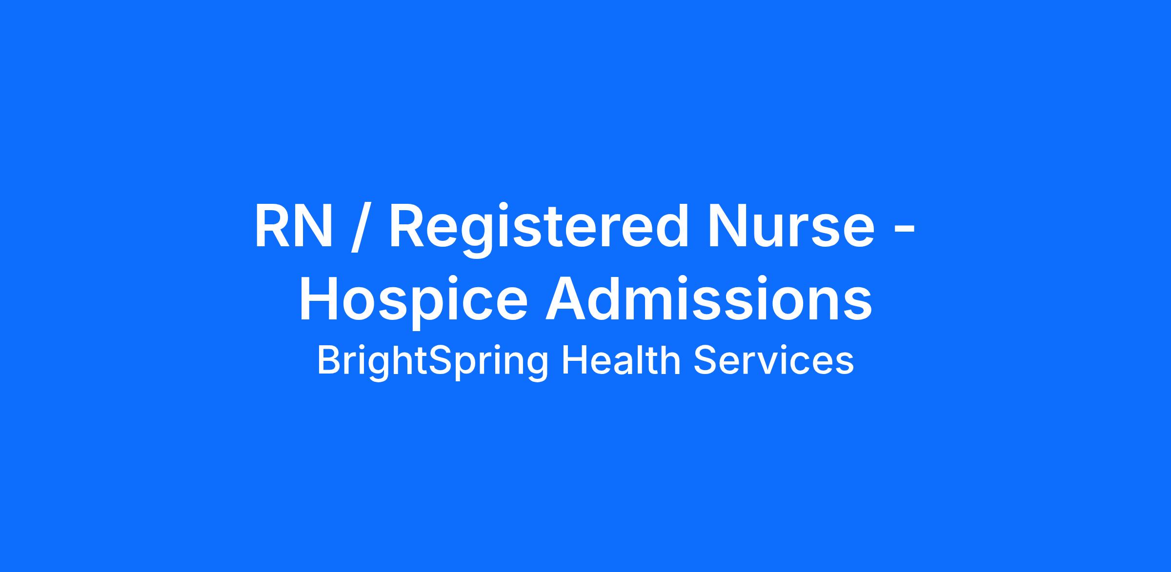 As a Hospice Admissions RN You will: