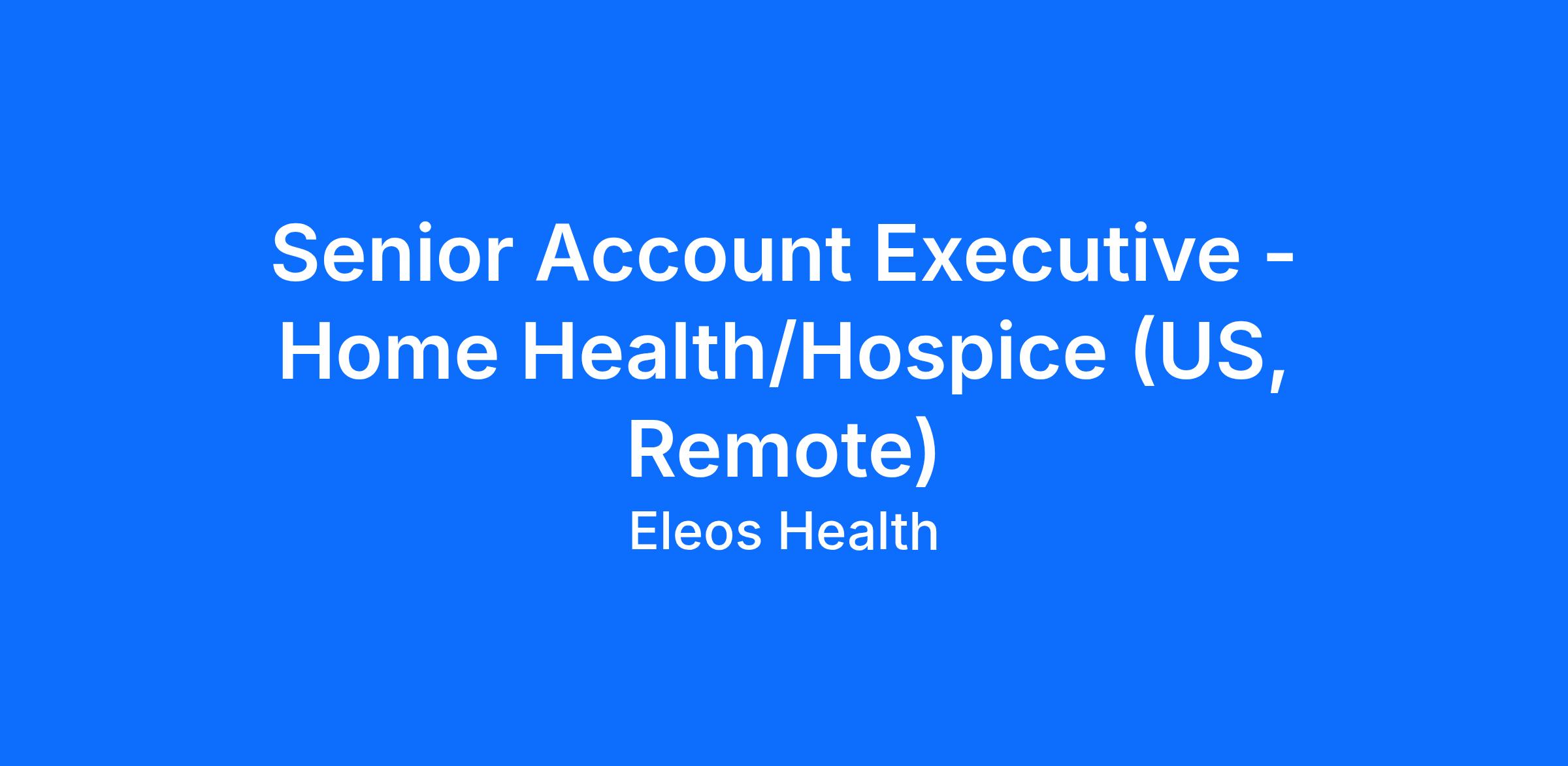 As a Senior Account Executive focused on finding new prospective clients within home health, and hospice, you’ll play a pivotal role in Eleos Health’s growth. You’ll champion our innovative solutions, forge meaningful relationships, and help drive revenue to new heights. Collaborating across departments, you’ll dive deep into market needs, elevate our market position, and shape Eleos Health as the go-to leader in this space. This is your chance to be part of a dynamic, high-growth company that’s redefining how home health and hospice is delivered.