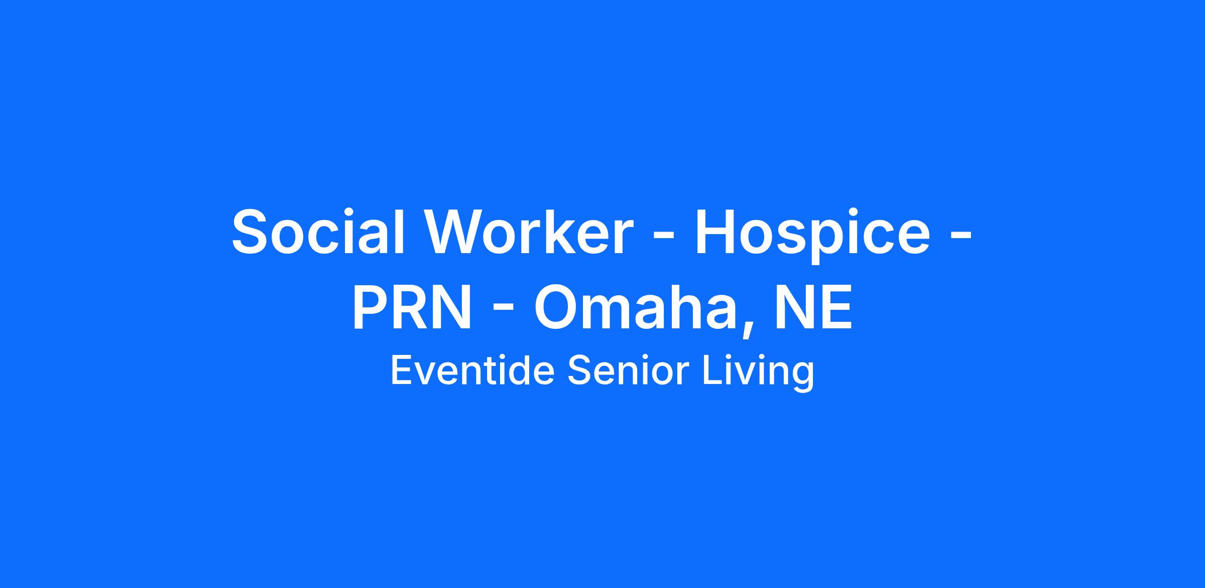 Tabitha Home Health Care and Hospice, LLC - A Collaboration with Immanuel in Omaha, NE is seeking a Social Worker to work PRN/as needed. This schedule includes a weekend and holiday rotation.