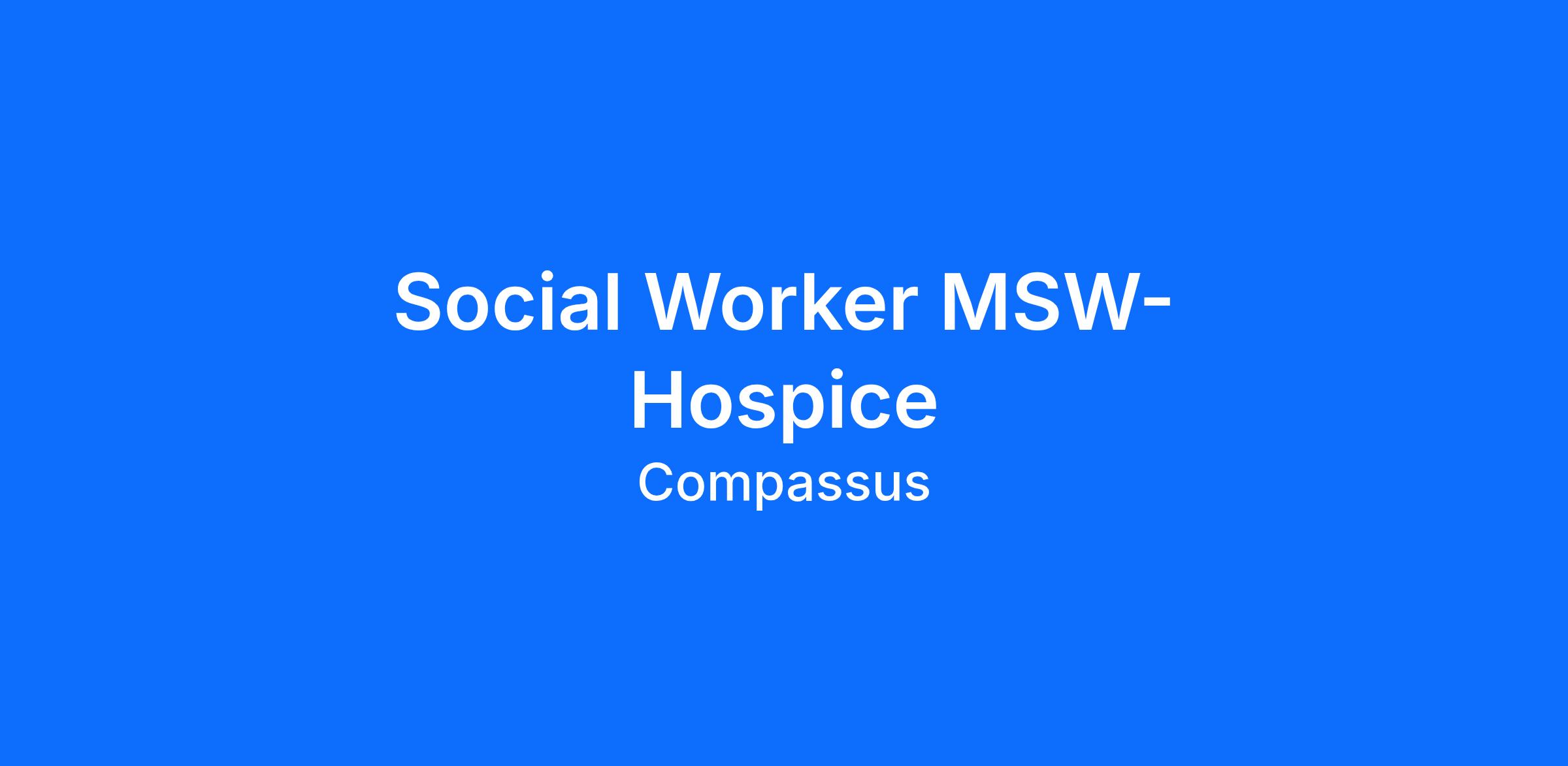Make a lasting impact by joining Providence at Home with Compassus, leaders in home-based hospice and palliative care. We’re seeking a compassionate and experienced Hospice Social Worker to provide essential support to patients and families across various care settings, including homes, long-term care facilities, and hospitals. In this role, you’ll use your clinical judgment to assess and address psychosocial, financial, environmental, and community needs, helping patients maximize their functioning and quality of life. You'll provide crisis intervention, grief support, and counseling around end-of-life issues while facilitating coordination among families, care teams, and referral sources. As a key member of the interdisciplinary team, you’ll contribute to care planning, ensure compliance with regulatory standards, support discharge planning, and offer consultation across the organization—all while working independently and under minimal supervision. If you're dedicated to holistic, patient-centered care, we invite you to bring your skills and heart to our team.