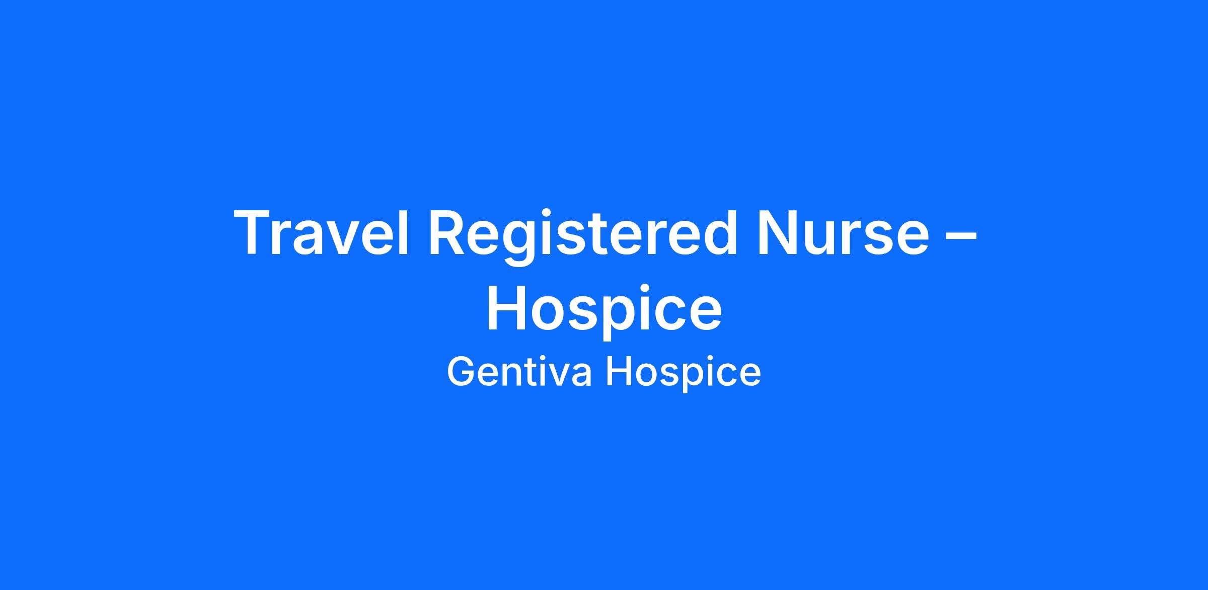 • Travel to various Gentiva hospice locations as assigned to fill urgent needs